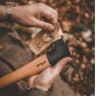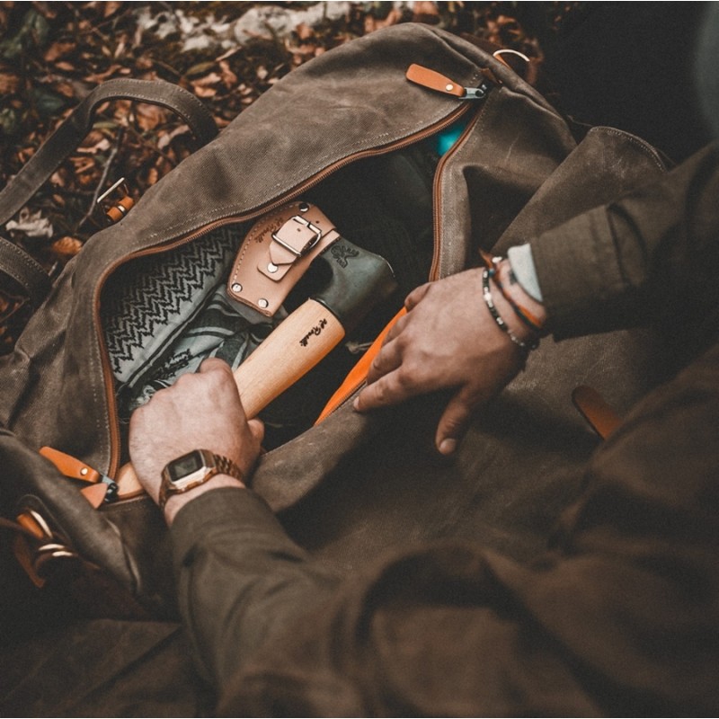 Roselli kısa saplı outdoor baltası, vahşi doğada maceralar için kullanışlı bir araçtır. Güçlü, keskin, odun kesmek ve ayırmak için mükemmeldir. Taşımak için pratik el yapımı deri kılıfıyla birlikte gelir. Ürün Açıklaması Huş ağacından yapılmış kısa bir sapa sahip, pratik boyuttaki Roselli'nin Fin el yapımı outdoor baltasıdır ve her yere yanınızda götürebilirsiniz. Şimdi daha optimum denge ve daha az çabayla daha zor görevlerle daha kolay başa çıkmak için yeni bir sap tasarımıyla. Baltalarımız her zaman sözlerini tutar ve birçok kişi tarafından vahşi doğaya çıktığınızda mükemmel bir arkadaş ve araç olarak kabul edilir. Roselli'nin baltaları güçlüdür, aşırı keskindir ve kesme, budama ve kereste kesme için kolayca kullanılabilir. Ayrıca, baltaların geniş bıçak açısı, ayırırken sıkışmasını önlediği için odun ayırma ve germe için de olağanüstü bir araçtır. Balta ağzını korumak için sade, bitkisel tabaklanmış Fin deri kılıf ve kemerde taşımayı veya sırt çantasına takmayı sağlayan pratik bir halka ile birlikte gelir. Teknik Özellikleri Çelik : Finlandiya üretimi yüksek karbonlu çelik Sertlik : Yaklaşık 60 HRC Balta Ağız Genişliği : 90 mm Toplam uzunluk : 350 mm Ağırlık : 720 g Sap : Birch Tree (Huş Ağacı) Kılıf : Tabaklanmış Deri Roselli, son 40 yıldır kaliteli baltalar ve bıçaklar üreten bir Fin şirketidir. Şirket, en iyi bıçak şirketlerinin çoğu gibi, başka türlü bulunamayacak bir şey yaratma ihtiyacından doğmuştur. Heimo Roselli, kırsal Finlandiya'da büyümüş ve kendi aletlerini yaratmaya başlamış, demircilik becerilerini mükemmelleştirmiş ve çeliğinde sertlik ile esneklik arasında bir denge bulmuştur. Roselli ürünleri Finlandiya'nın Harmoinen kentinde elle işlenmiş, keskinleştirilmiş ve mükemmelleştirilmiştir. Her ürün benzersizdir. Doğal malzemelerin desenleri ve dokuları değişebilir.